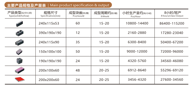 磚數(shù)量(塊/8h) | 114744-191240 | 2.8KG/塊 | |